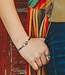Rhodium-plated brass with compressed turquoise and copper, cubic zirconia, and paint detailing.