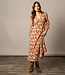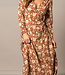Long silhouette with floral pattern, deep V-neck, and long sleeves with cuffs