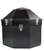 The hat carrier has lockable locks, a mirror, is suitable for air travel and hinges up to 90 degrees.