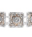 Add a touch of nostalgia to your jewelry collection with the Ranch House Floral Bracelet. Featuring square, floral-inspired conchos in a striking two-tone silver and rose gold finish, this adjustable bracelet is secured with a lobster clasp for comfortable wear. Its vintage-inspired design evokes the warmth of heirloom jewelry and the comforting patterns of a beloved quilt.